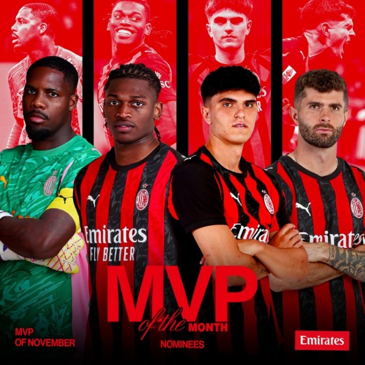 12月2日讯 米兰公布了11月队内最佳球员候选,迈尼昂、莱奥、巴特萨基和普利西奇。